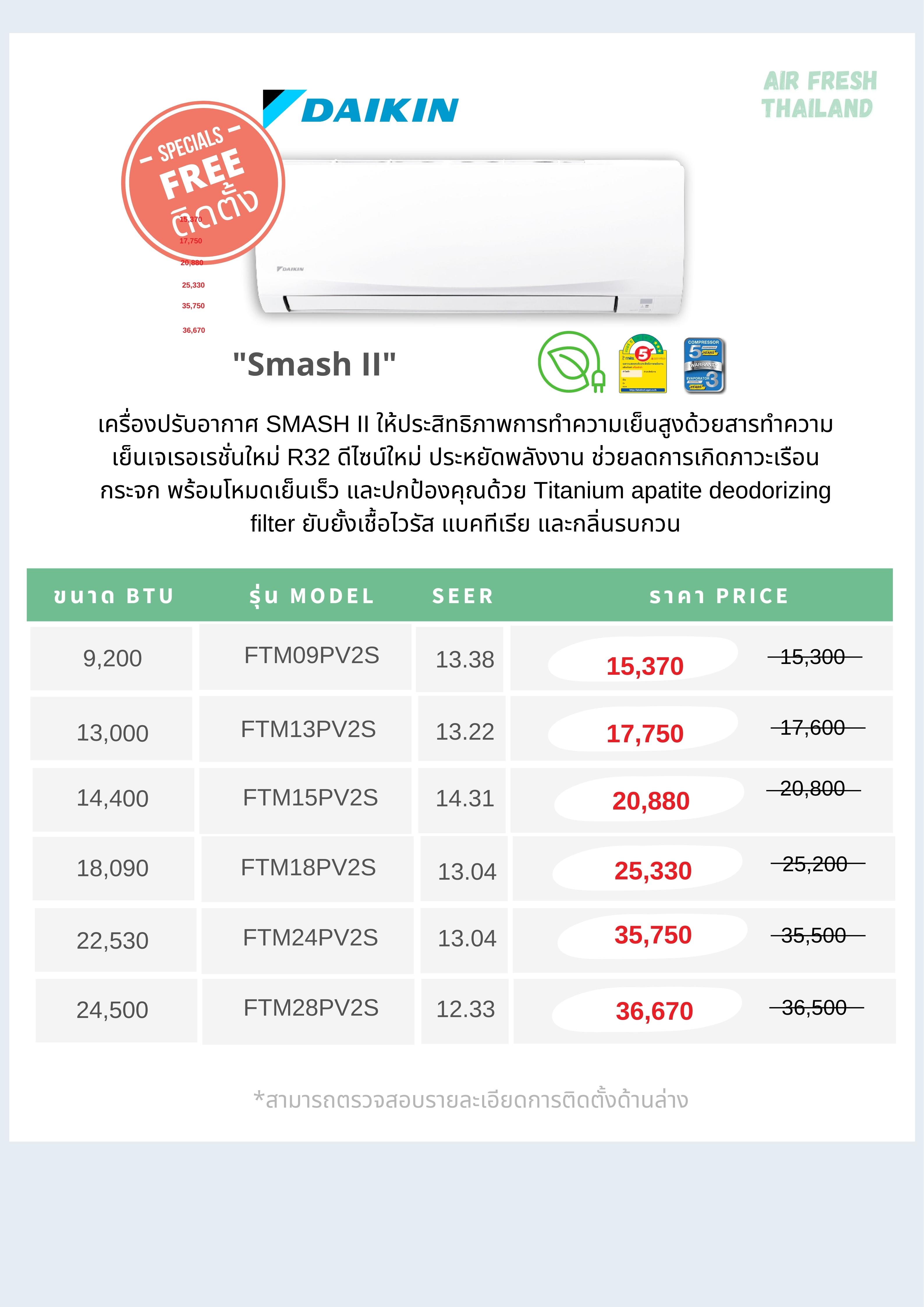 - ทาง Air Fresh Thailand จะไม่รับผิดชอบความเสียหายที่เกิดขึ้นในกรณีที่มีการให้ผู้อื่นแก้ไขงานติดตั้ง