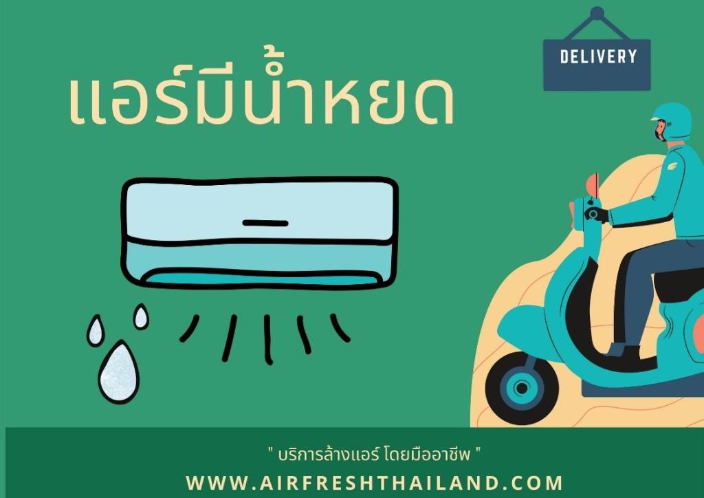 กรณีที่มีน้ำหยดบริเวณท่อน้ำยาแอร์นั้น เกิดจากการห่อฉนวนที่ไม่แน่นพอ และไม่ได้ห่อหุ่มท่อตลอดแนว สามารถแก้ไขโดยปรับห่อท่อให้แน่นและตรวจสอบให้แน่ใจว่าได้ทำการห่อหุ่มท่อตลอดทั้งแนว