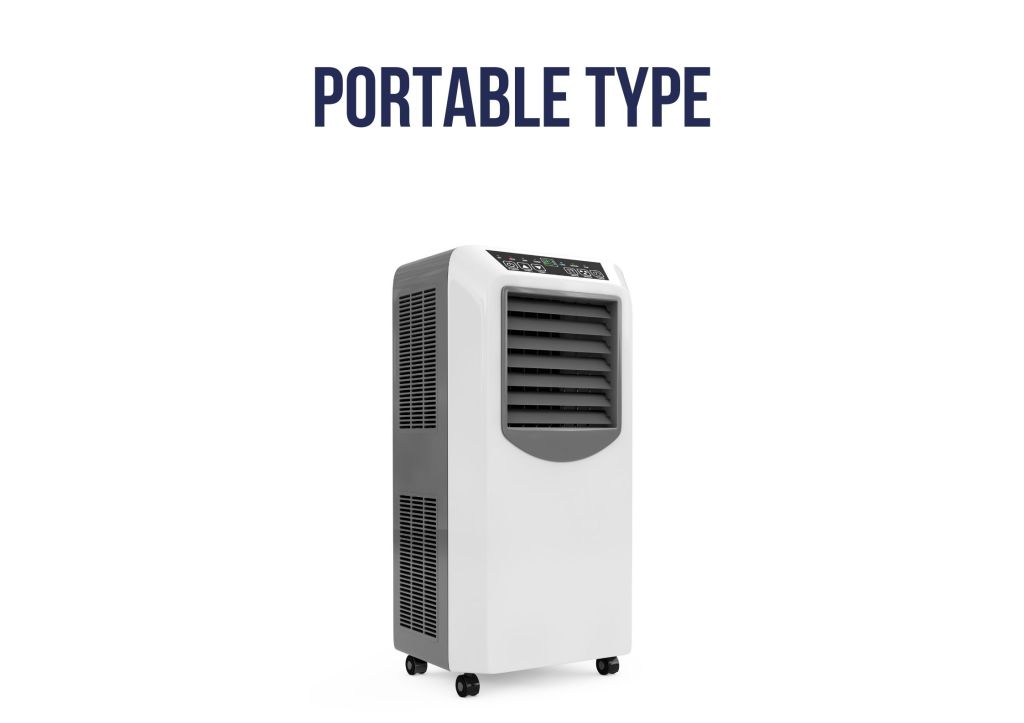 เป็นแอร์ชนิดที่กะทัดรัด ส่วนมากจะมีล้อที่ทำให้สามารถเคลื่อนย้ายเปลี่ยนที่ใช้งานได้ง่าย และแอร์ชนิดนี้ไม่ต้องมีการติดตั้งเพื่อใช้งาน เพียงเสียบปลั๊กและต่อท้อหรือชุดระบายความร้อน ก็สามารถใช้ได้ทันที เนื่องด้วย BTU ที่ไม่มาก ทำให้เหมาะสำหรับห้องที่มีขนาดเล็ก หรือ มีไว้เป็นตัวเสริมเพื่อเพิ่มความเย็น