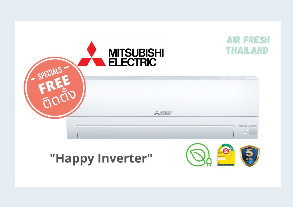 ข้อมูลจาก Reference: Mitsubishi Electric https://www.mitsubishi-kyw.co.th/SpecialPages/SearchResults.aspx?searchtext=happy%20inverter&searchmode=anyword